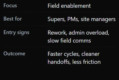 The results: It's not just faster paperwork — it's fewer delays, tighter schedules and a field team focused on building, not burnt out from endless hours of paperwork.